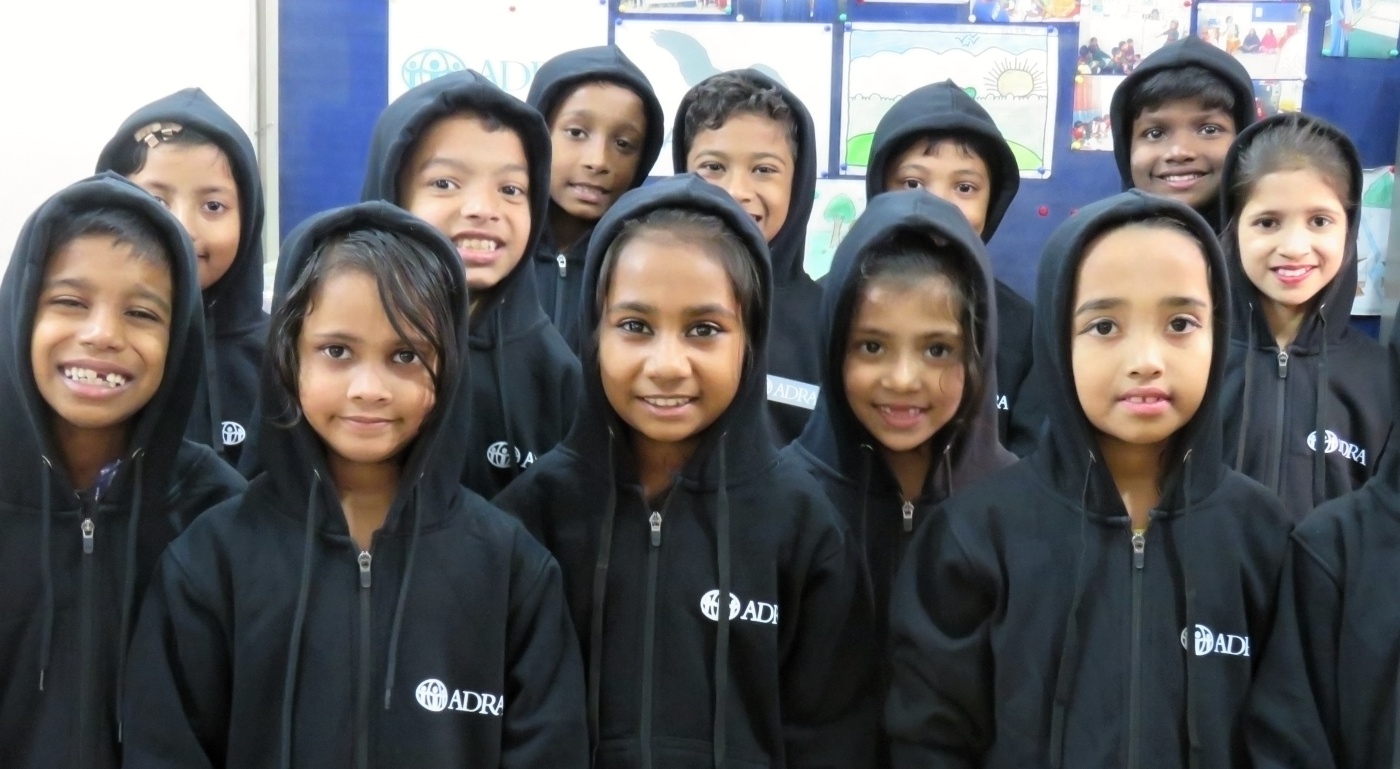Pro děti to znamená nejen nepohodlí, ale i riziko prochlazení a nemocí. Proto jsme jim rozdávali teplé oblečení – slušivé mikiny s kapucí a logem ADRA.